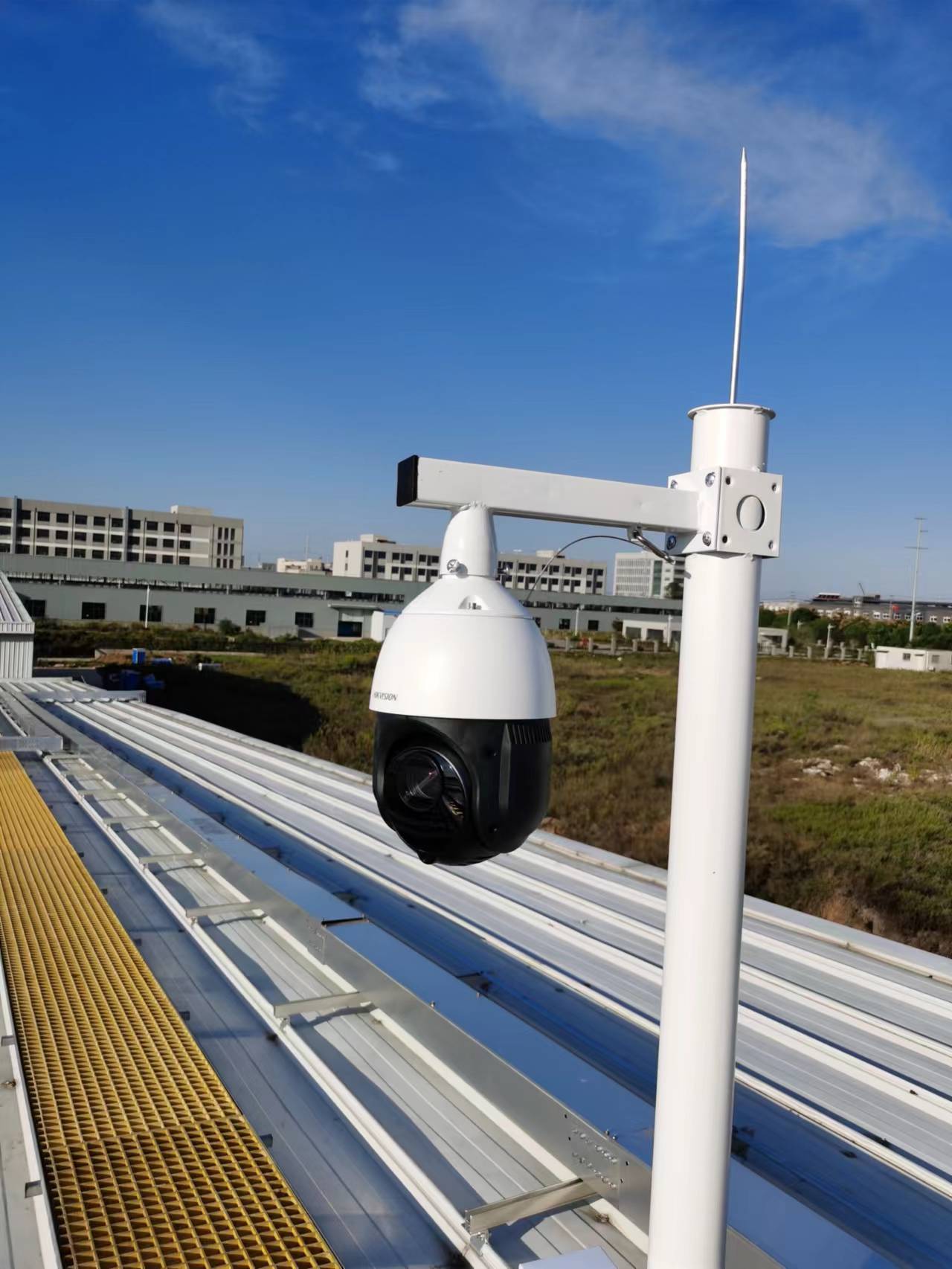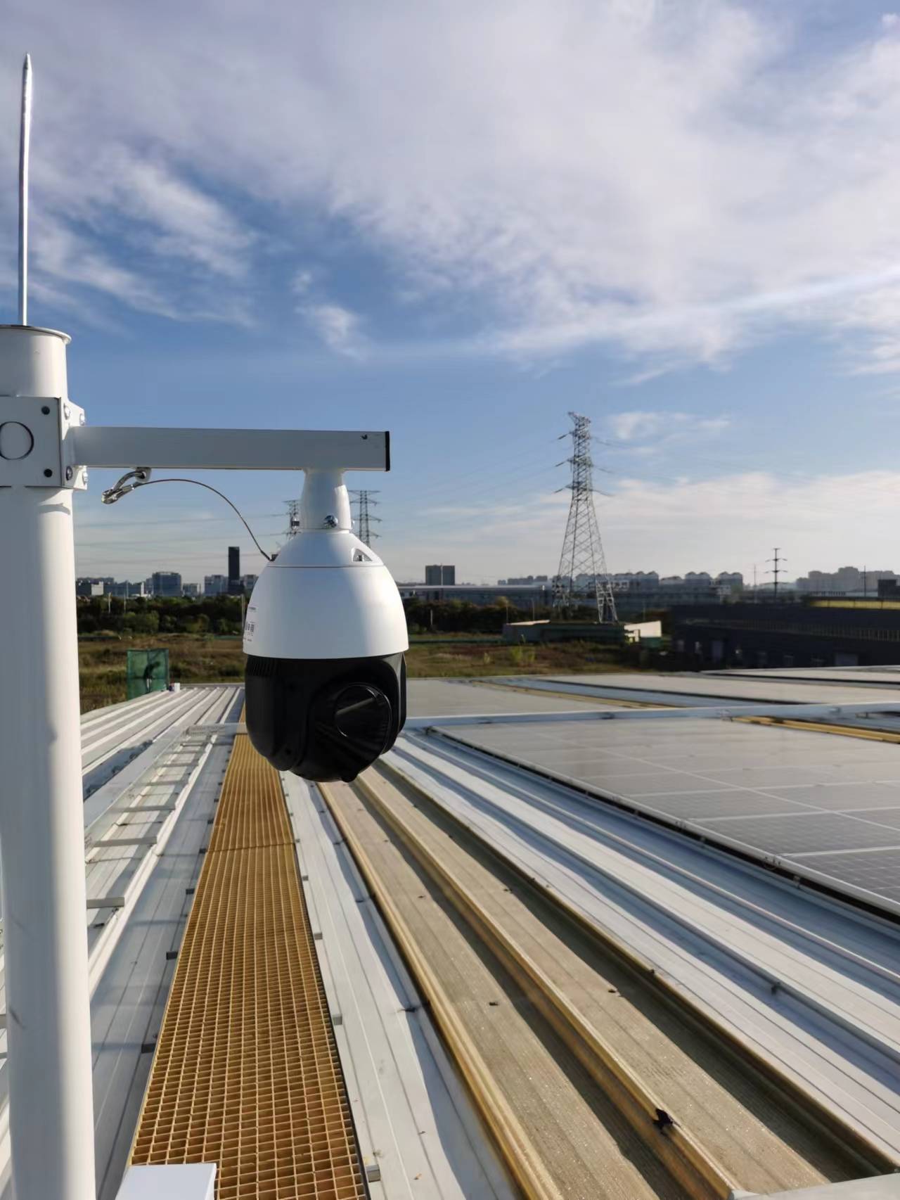 屋顶太阳能光伏发电项目并网监控安装,监控东西各装一台??低?寸球机,22倍光学变焦,内置物联网卡,只需电源即可实现实时画面监测,保障光伏发电板正常运作。